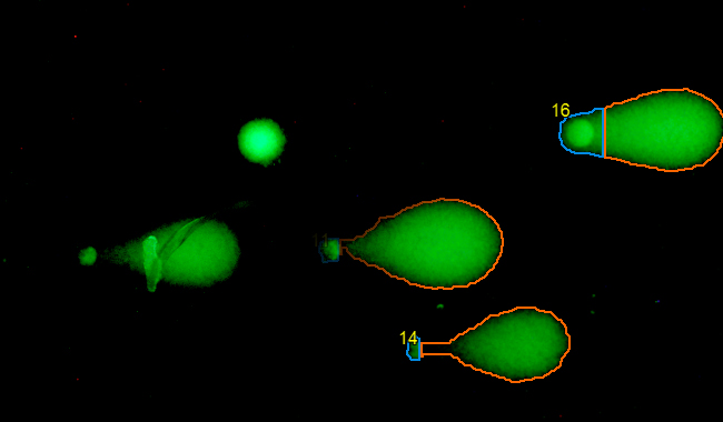 彗星試驗的結合其可靠性容易使它的一個有趣的和擴展的技術來測量DNA損傷。DNA損傷可以很容易地觀察到彗星狀的結構,但不那么容易量化。使用圖像處理和分析的關鍵是獲得客觀和可重復的數據,以幫助您客觀地測量在彗星試驗中的DNA損傷。